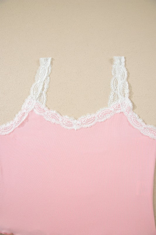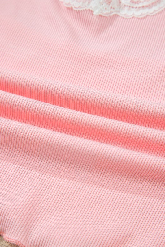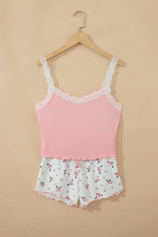 Effortless comfort meets everyday style with this 2-piece lounge set designed for women who value relaxation without sacrificing looks. The set features a soft, high-stretch ribbed knit fabric that moves with you, whether you're lounging at home or running errands. The cropped tank top showcases delicate floral lace splicing for a touch of elegance, while the coordinating shorts feature charming lettuce trimming at the edges. The mix-and-match design pairs a solid color tank with floral shorts, giving you versatile styling options. Perfect for lazy mornings, cozy evenings, or casual days at home, this set delivers all-day comfort without compromise. The breathable fabric and thoughtful details make it an essential addition to your loungewear collection. Viscose/Spandex