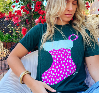 Pink Stocking on Emerald Green Tee![]()  - Regular price